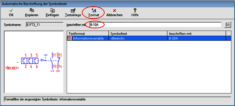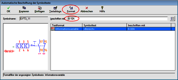 Automatische Beschriftung von Symboltexten