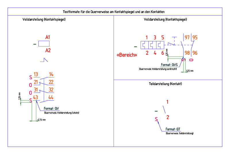 Die in Treesoftr CAD vordefinierten Textformate stellen eine DIN-gerechte Darstellung der Kontaktzahlen in den Kontaktspiegeln sicher und sollten daher vorrangig verwendet werden.