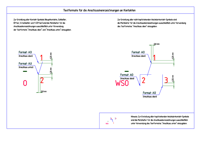 - Textformate für die Anschlusskennzeichnungen an Kontakten